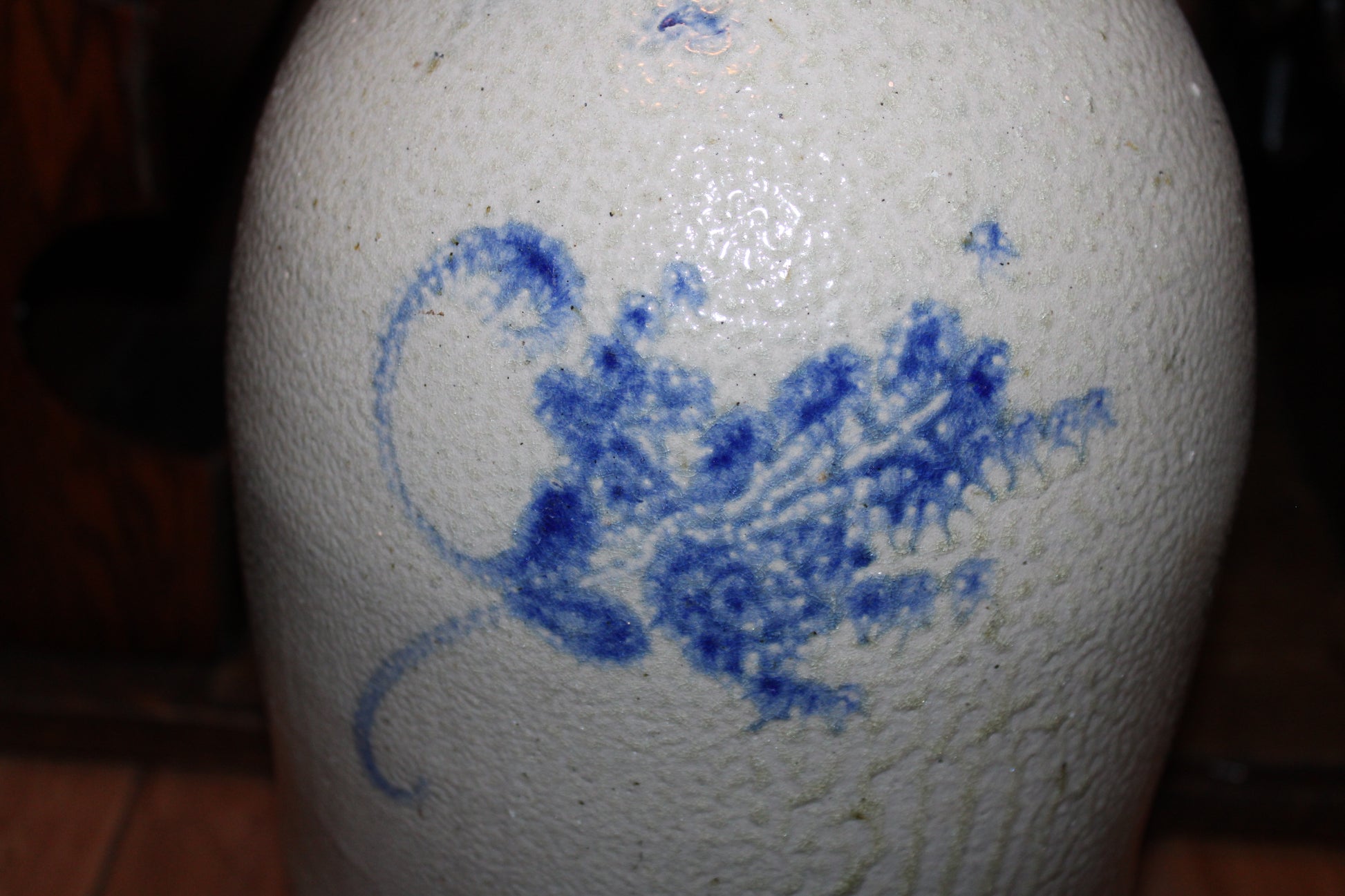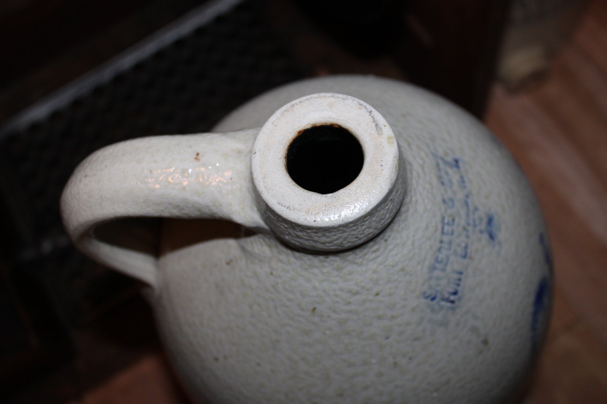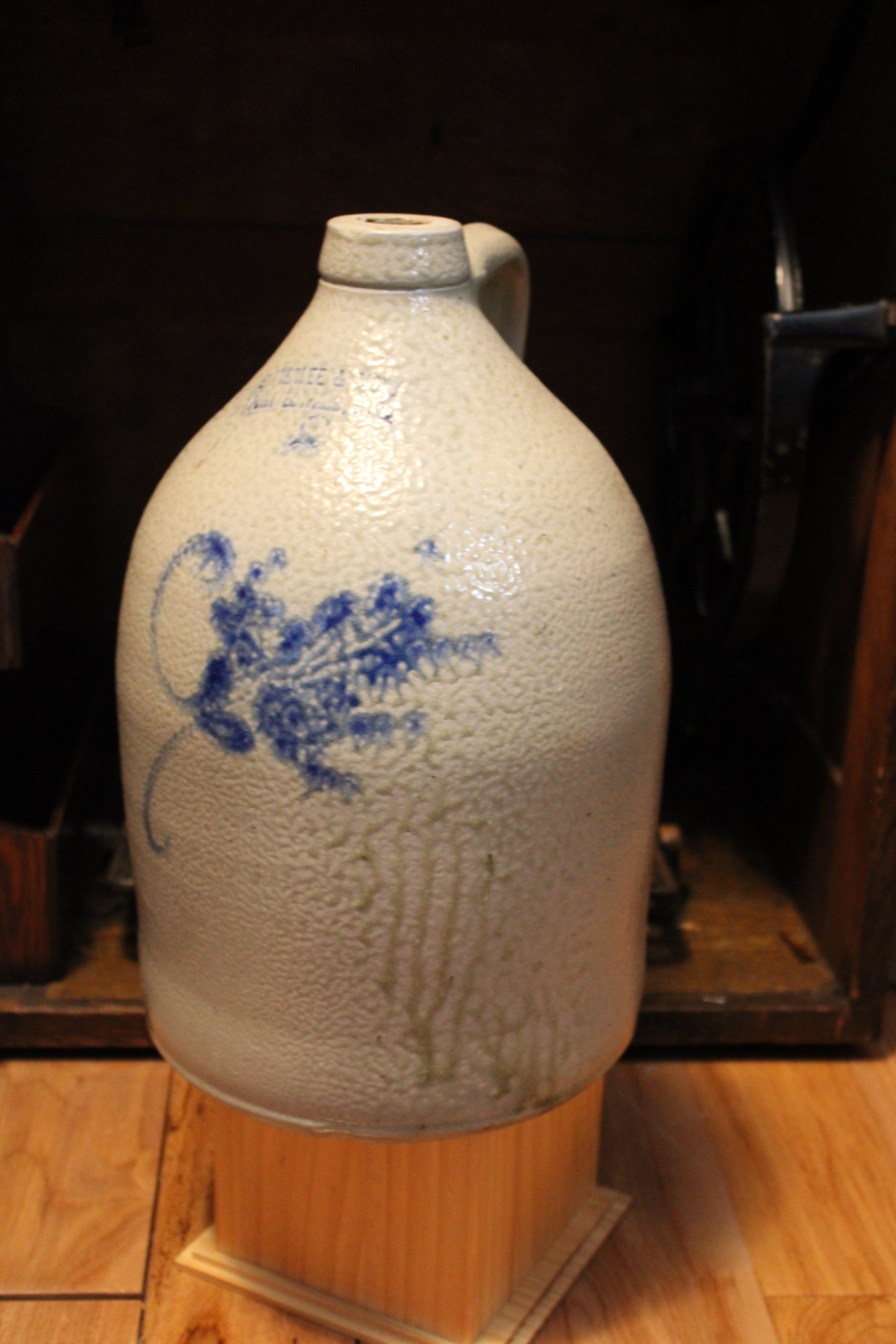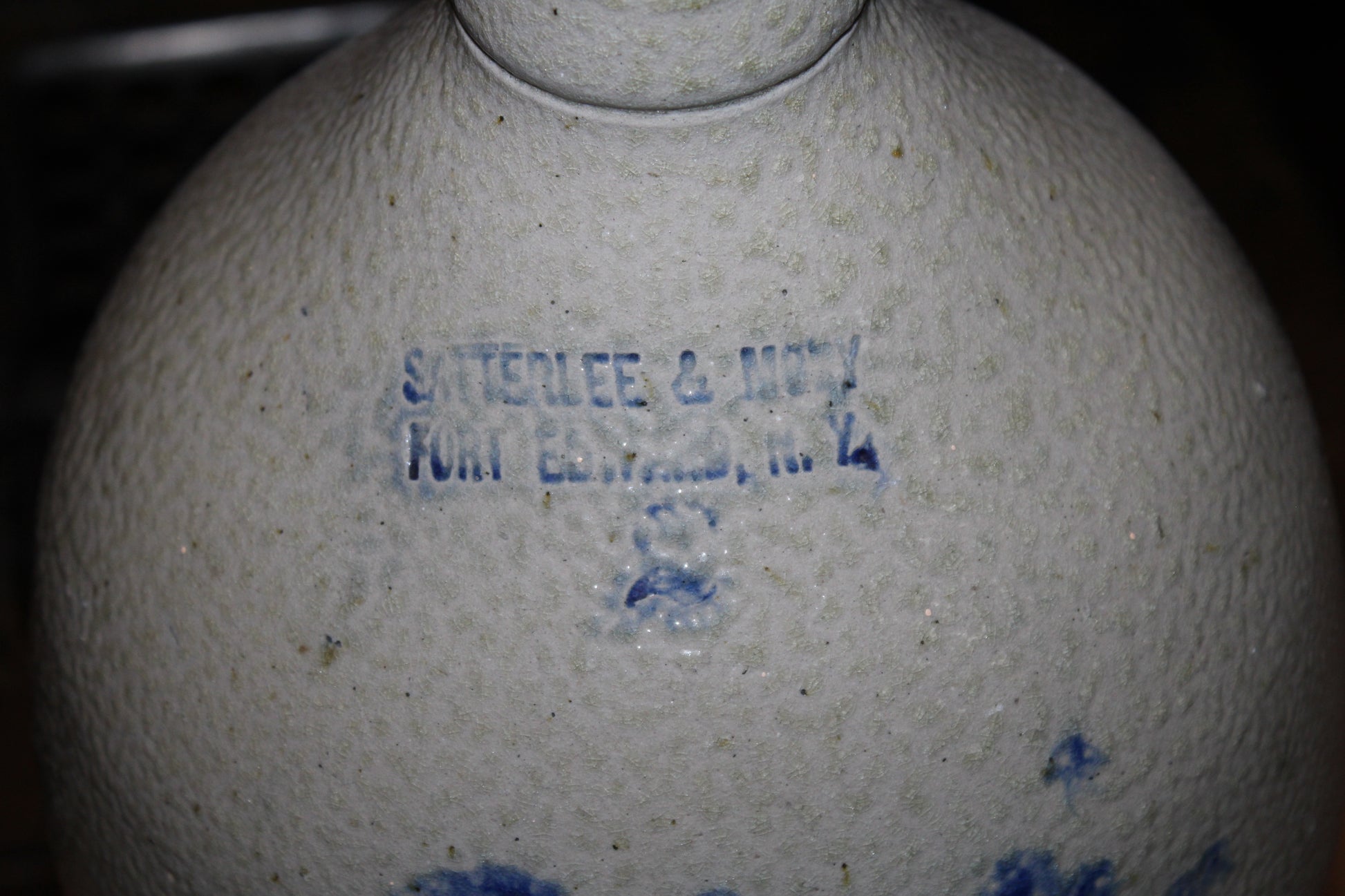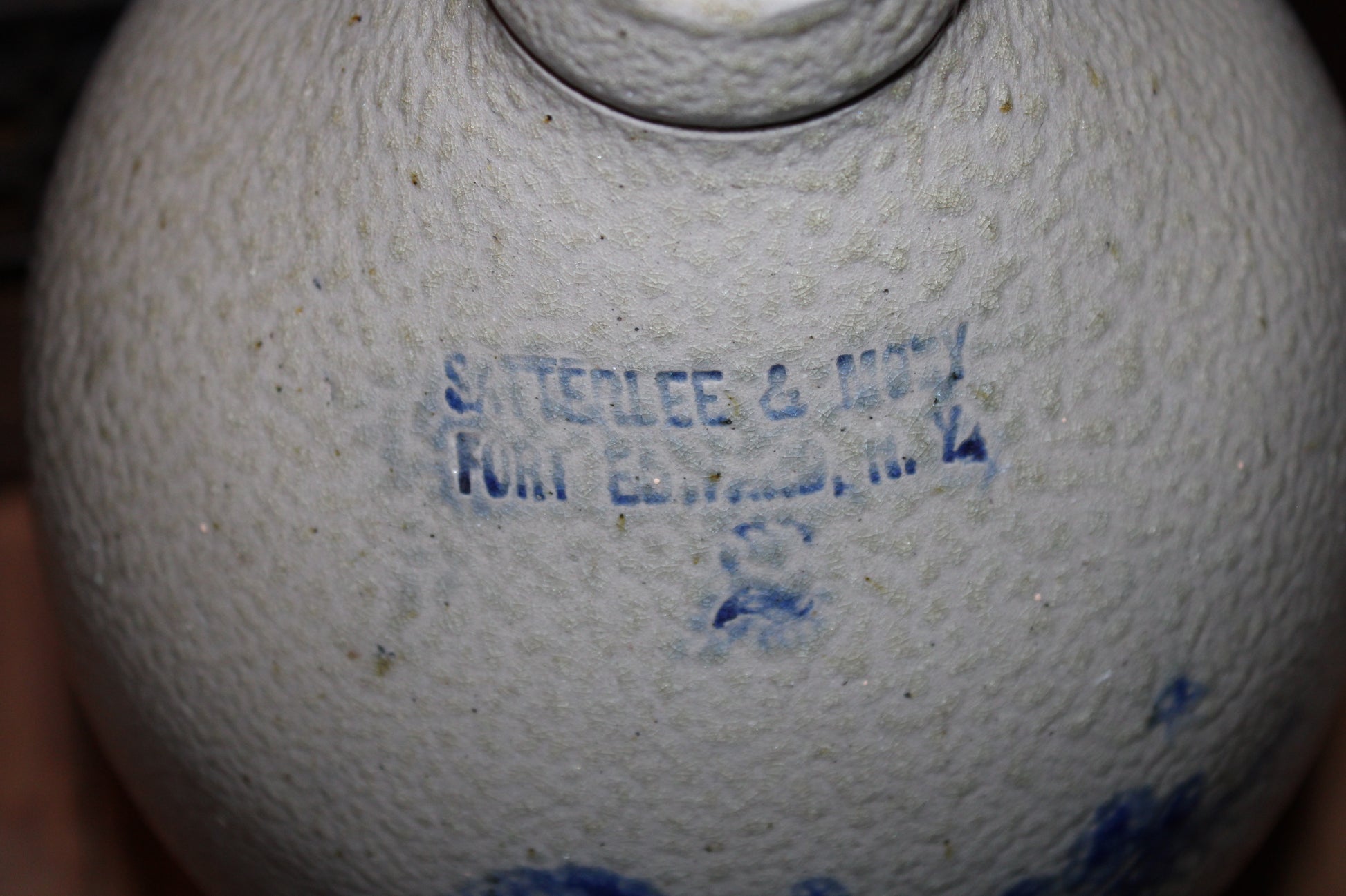 Rare Satterlee & Mory Fort Edwards N.Y. - Antique Jug Crock Cobalt Blue on Grey